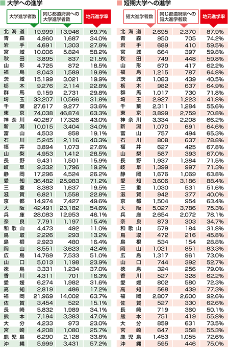 地元進学率;同じ都道府県の大学・短大へ進学した割合