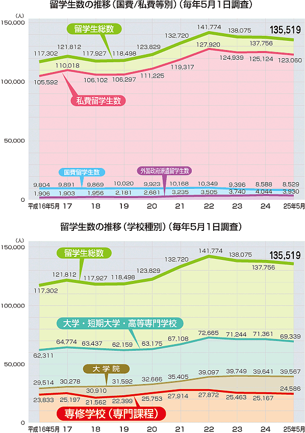 | データ資料: | 「平成25年度外国人留学生在籍状況調査結果」独立行政法人日本学生支援機構 |
