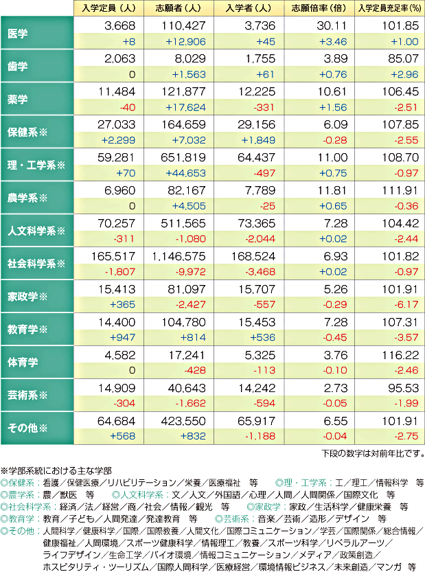 | データ資料: | 「平成26年度私立大学・短期大学等入学志願動向」より <日本私立学校振興・共済事業団 私学経営情報センター> |