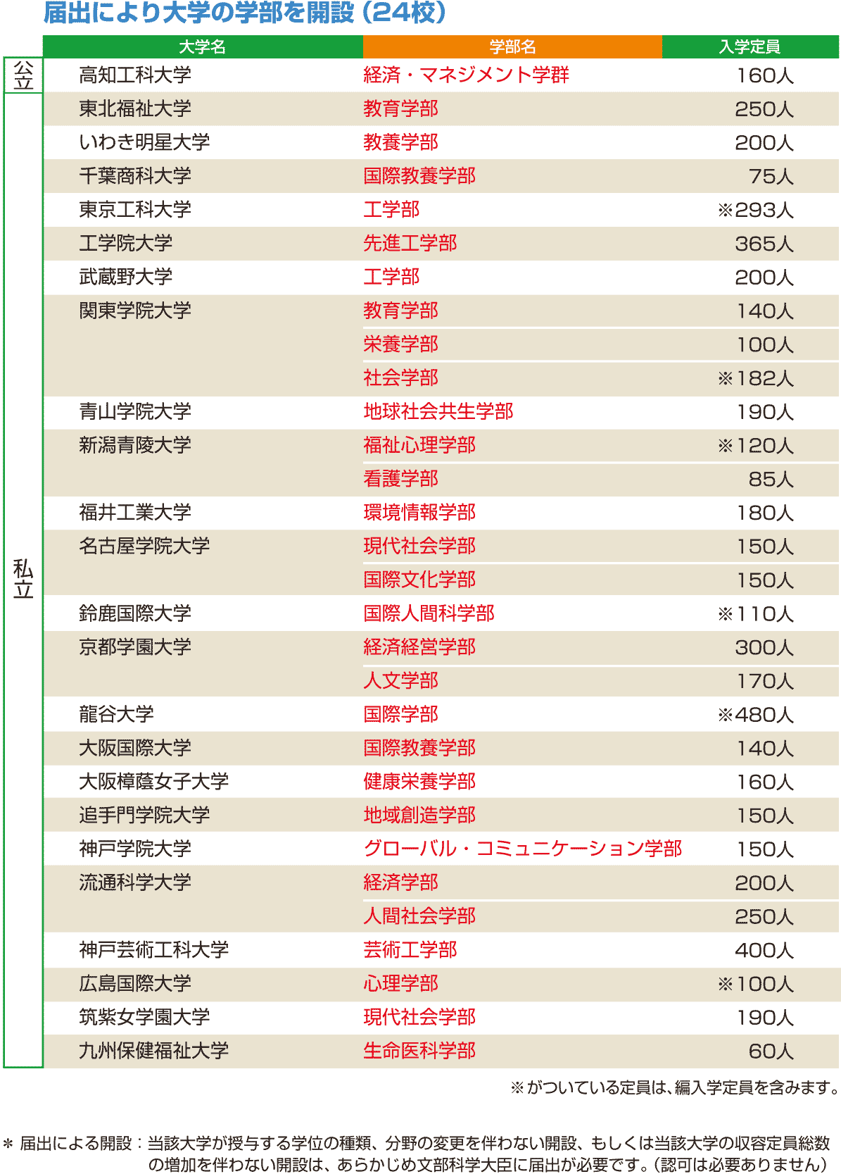 データ資料: 平成27年度開設予定の大学の学部等の設置届出一覧<文部科学省>