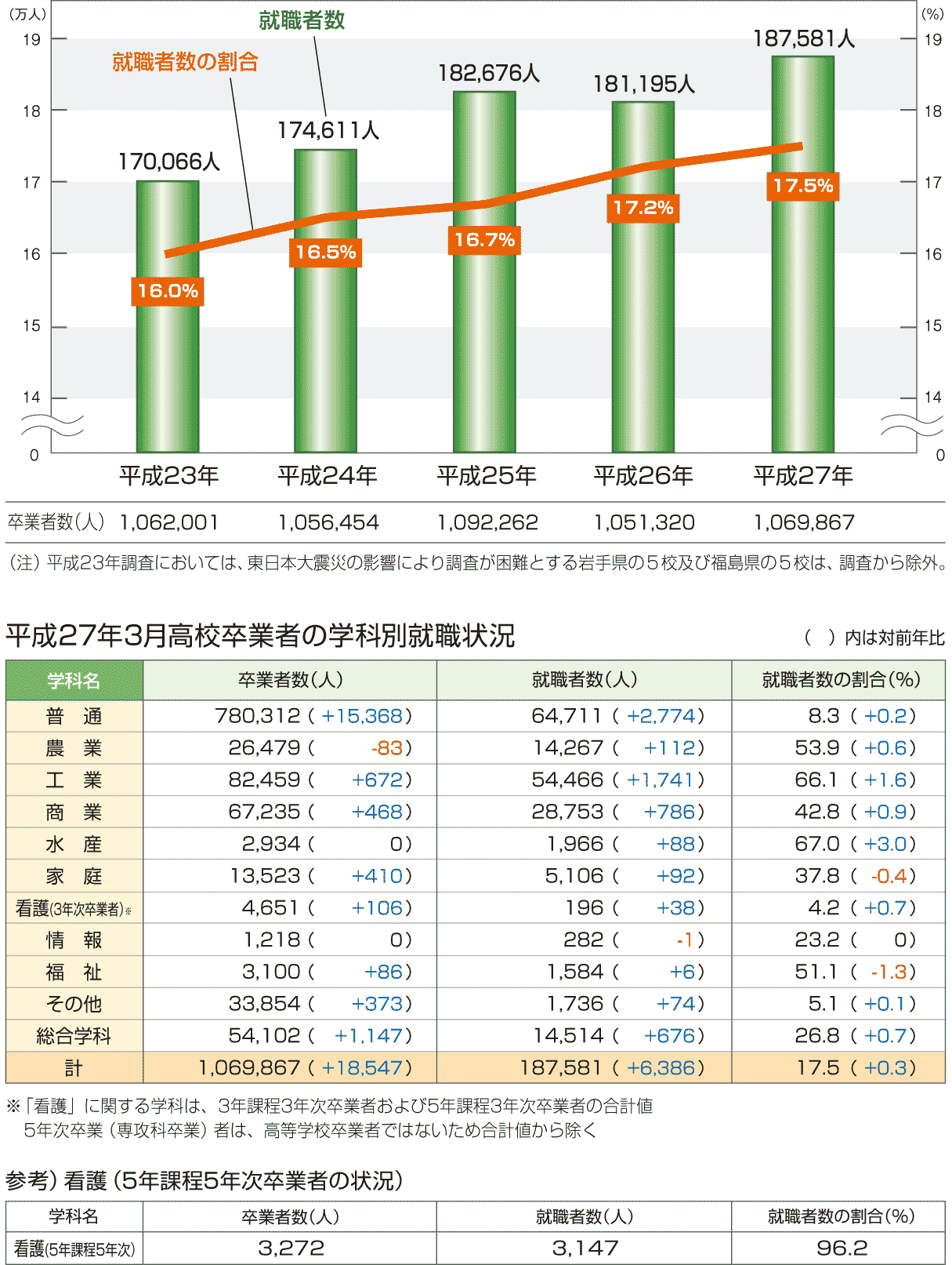 データ資料: 「平成27年3月高等学校卒業者の就職状況(平成27年3月末現在)に関する調査について」