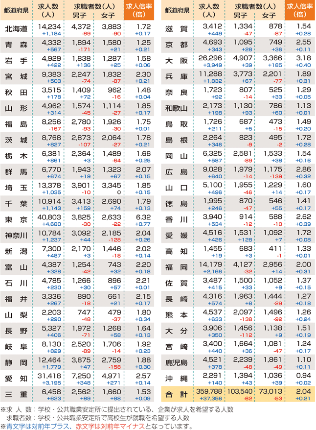 | データ資料: | 平成28年度高校・中学新卒者の求人・求職・内定状況(平成28年9月末現在)について <厚生労働省ホームページ>より表にして作成 |