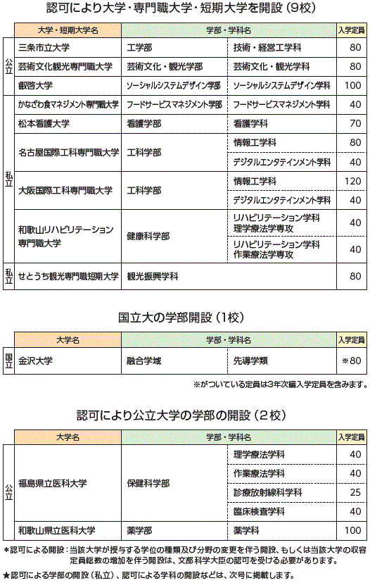 | データ資料: | 令和3年度開設予定の大学等の設置に係る答申について(文部科学省ホームページ)より表にして作成 |