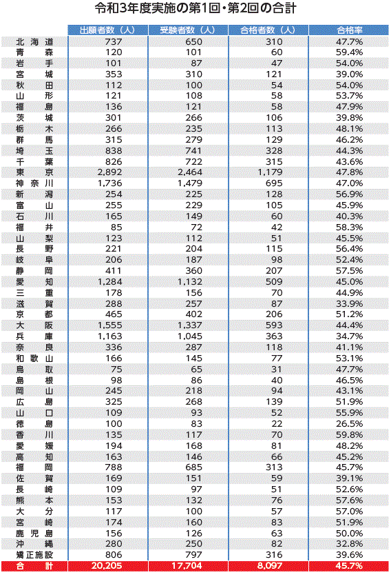 | データ資料 | : | 令和3年度第1回・第2回高等学校卒業程度認定試験実施結果について(文部科学省ホームページ)より表にして作成 |