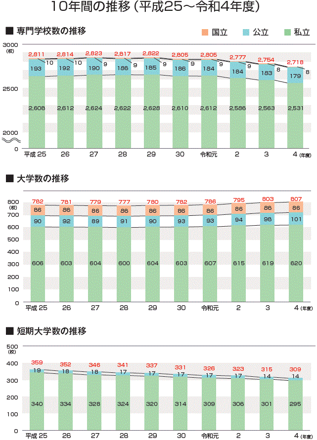 | データ資料 | : | 平成25~令和4年度の学校基本調査(文部科学省ホームページ)よりグラフにして作成。令和4年度は速報値。 |