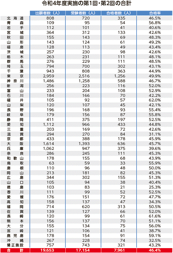 | データ資料 | : | 令和4年度第1回・第2回高等学校卒業程度認定試験実施結果」(文部科学省ホームページ)より表にして作成 |