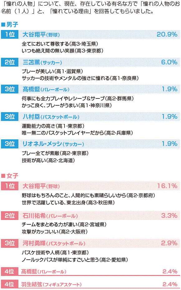 | データ資料 | : | JSインターネット調査「高校生ライフランキング」集計結果より |
