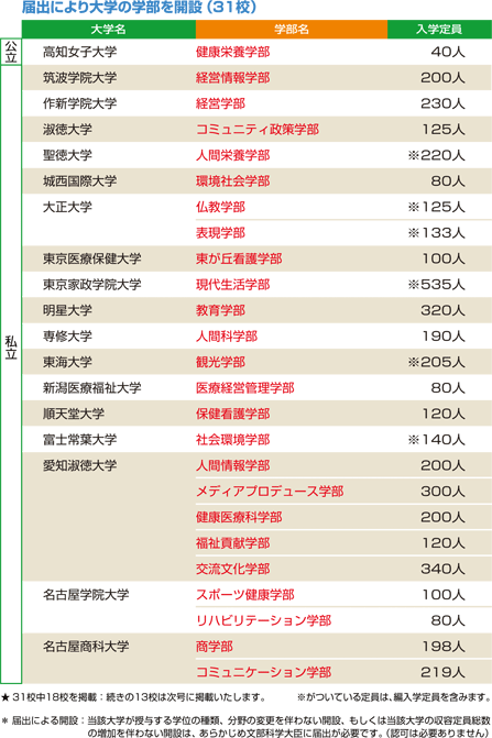 データ資料: 平成22年度開設予定の大学の学部等の設置届出一覧