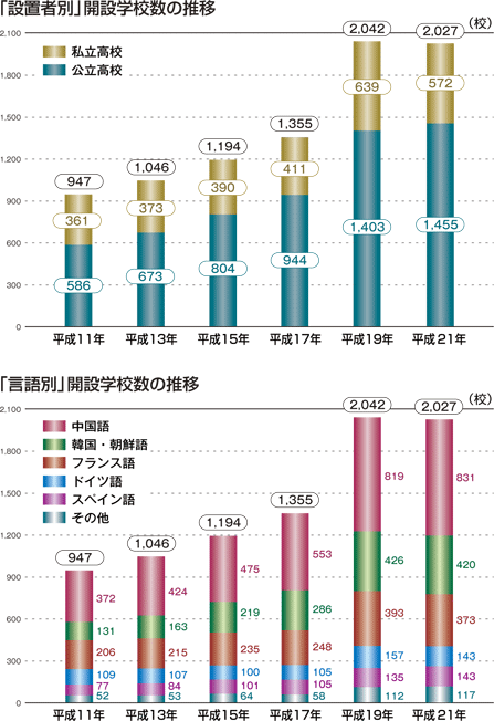 | データ資料: | 平成20年度高等学校等における国際交流等の状況について <文部科学省> ※この調査は、昭和61年度から隔年で行われており、今回は12回目の調査となります。 |
