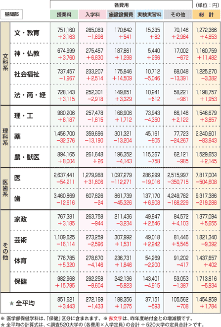 データ資料: 私立大学等の平成21年度入学者に係る学生納付金等調査結果について<文部科学省>