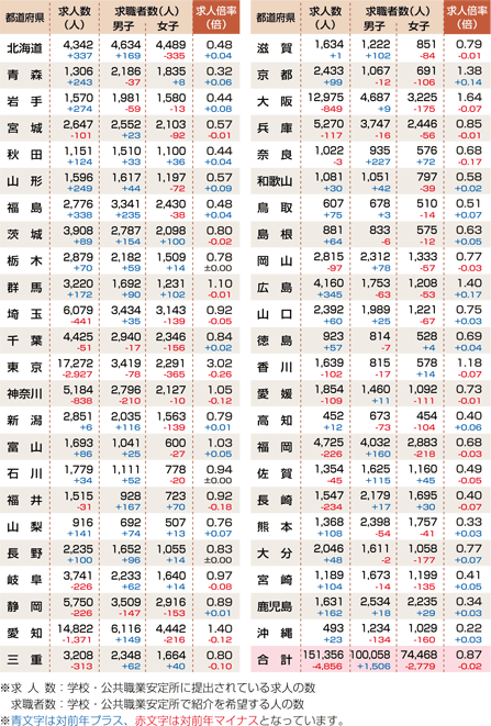 高校新卒者の都道府県別求人・求職状況