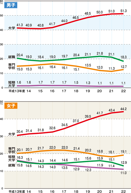 ※平成22年度は、平成22年度学校基本調査速報(平成22年8月発行)より
