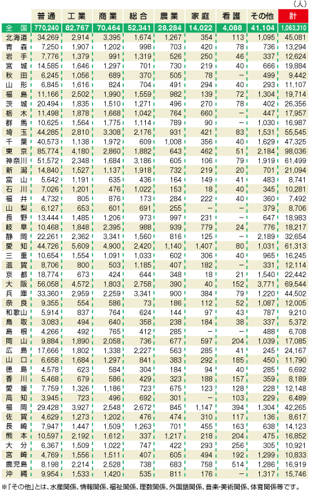 平成24年3月高校卒業予定の都道府県別・学科別高校生数