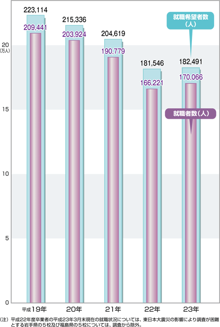データ資料: 「平成23年3月高等学校卒業者の就職状況(平成23年3月末現在)に関する調査について」