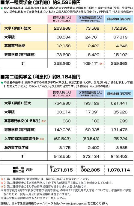 | データ資料: | 日本学生支援機構2011概要 奨学金貸与事業<日本学生支援機構> |