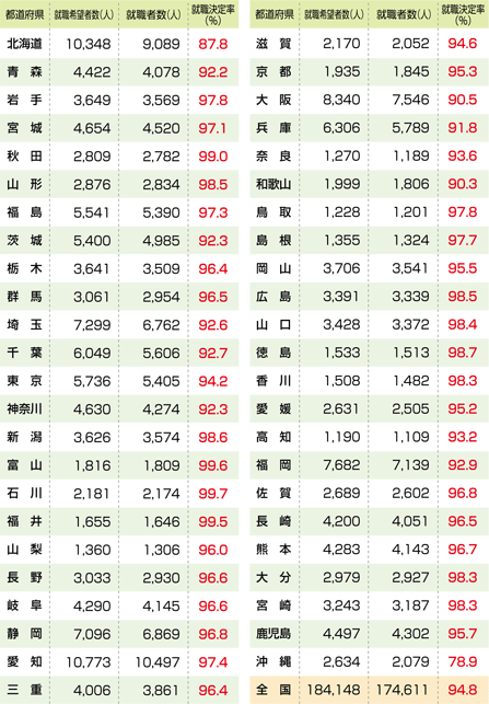 | 平成24年(2012年)3月高等学校卒業者の就職状況 |