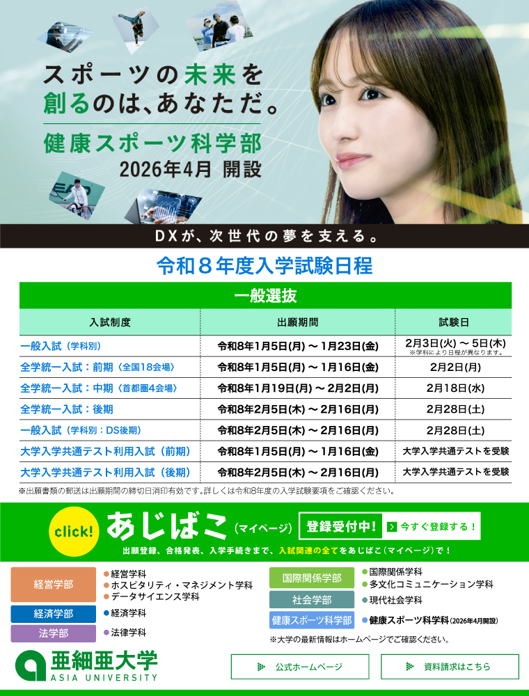 亜細亜大学 - 学校案内や願書など資料請求[JS日本の学校]