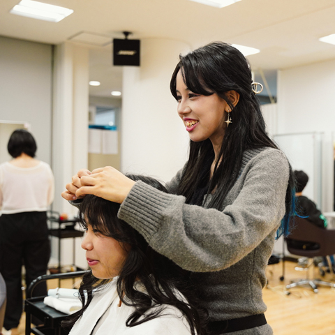 トレンドのヘアアレンジを先輩にやってもらえたり、レクチャーしてくれます。