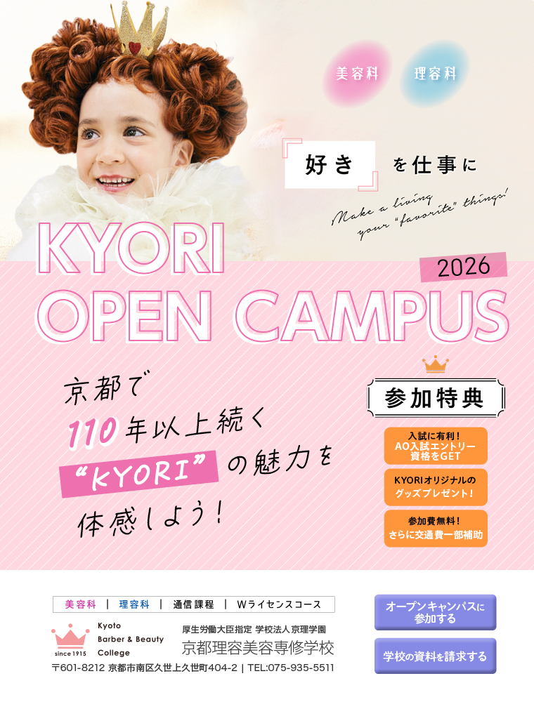 国家試験合格&就職保証制度の“KYORI”。110年超の京都の伝統校でトータルビューティーを学ぶ!